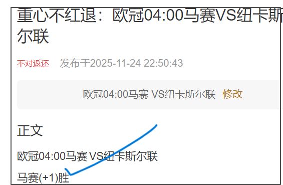 昨日擒1个2串1,拿捏1个3串1,收1个4串1,篮球收1个2串1,再收1个3串1,欧冠杯 马赛vs纽卡斯尔联
