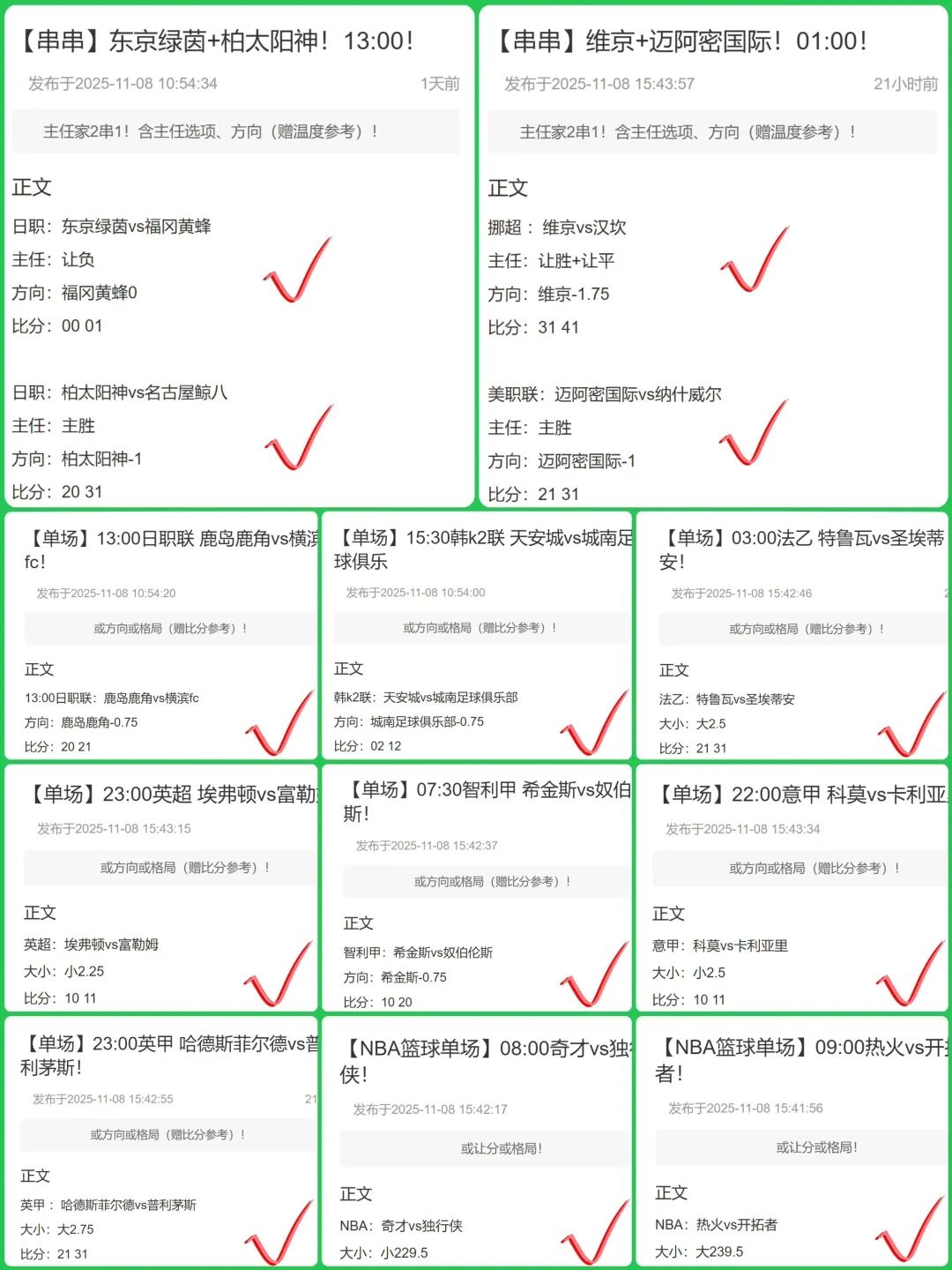 昨日战绩回顾 【波总私菜单场2组大满贯(连续2天全红)!西篮甲6组12场√11场!主任命中2组2串1】