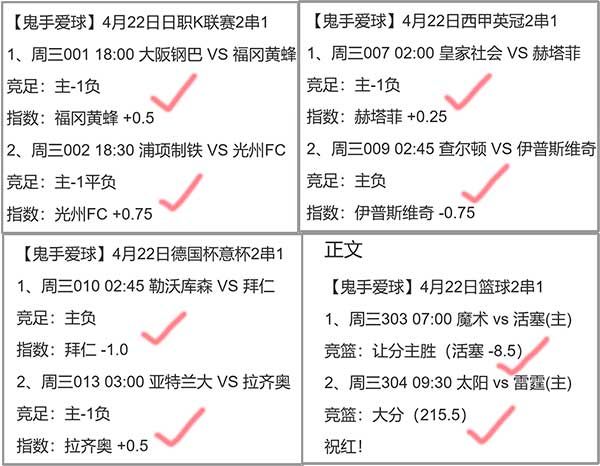 公推冲4连红,主任足篮命中4个2串1,单场4组12中10收3个2串1!