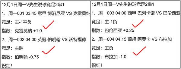 4场主任足球两个2串1全红拿下,另收一组单场3串1!