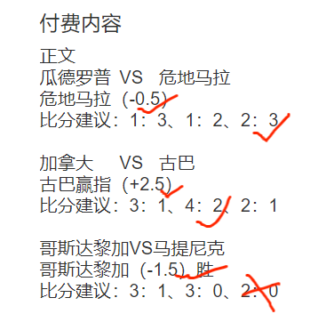 付费推荐依然强势:9中8并力擒5场比分。2串1中1串+红一半,结束的四场竞猜全部命中!竞猜比赛8连红无一失手!阻挡收获的除了意外,竟然还有天气.....