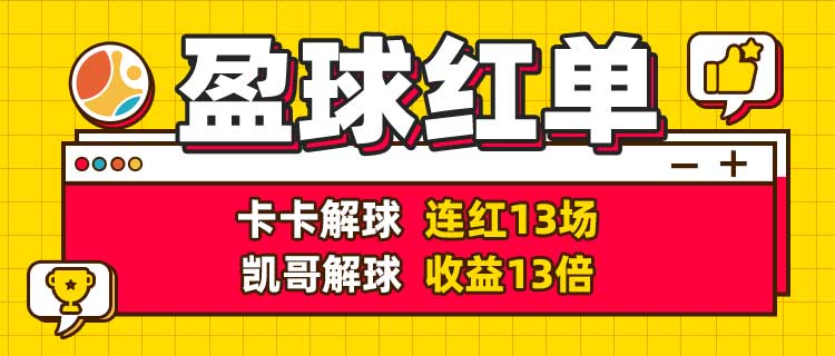 卡卡解球解读13连红领跑,凯哥解球26中21收益近13倍。