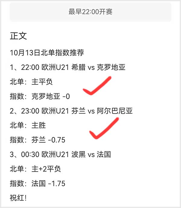 欧洲U21北单精选3中2,命中克罗地亚U21客场不败和芬兰U21的主胜打出,法国少赢了一个。