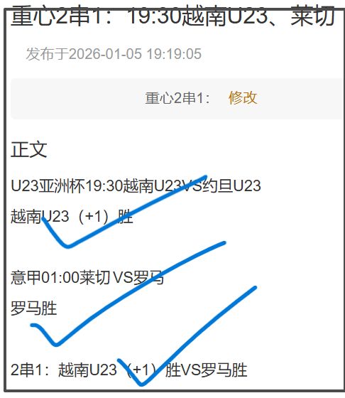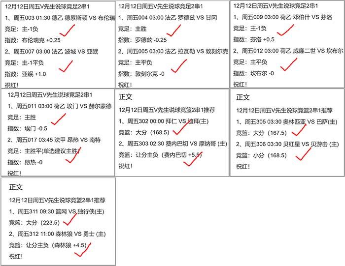 周三私房菜主任足篮球+单场足球总计命中5个2串1!主任足球只收获一组欧冠蚊子肉拜仁的胜串斯图加特-1负过关,-2胜平未能打出。主任篮球命中两组2串1方案,让分和大小分玩法各红了一串!单场足球4个方案中两组3场全红附送的两个2串1过关,外加一组3中2!