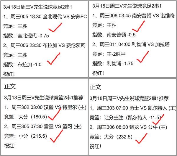 公推22中18依旧稳定,足篮收4个2串1,单场4组全优收两个3串1!