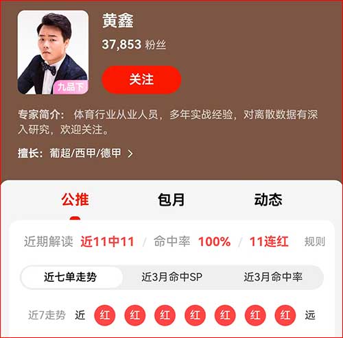 多达13名专家连红上双,寒王足球解读狂揽18连红独占鳌头。