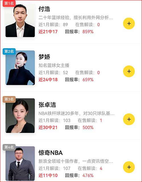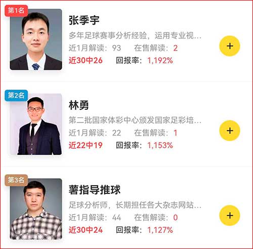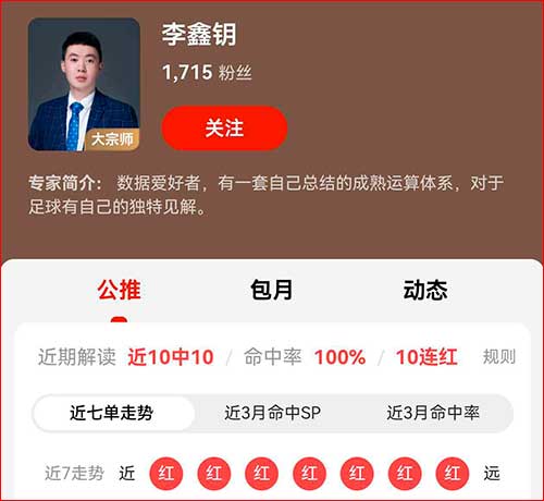 【杨子墨】足球12连红收益超11倍,【谭凯】篮球实现三榜第一