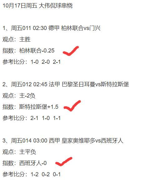 今天周六,13点有很多日韩澳的比赛,因此我们今天早点发车!冲击好评!而晚场五大联赛也回归了,好好发挥!好好红!周六加油!wx搜索关注同名公众号“大伟侃球”可查看今日更多信心私料。