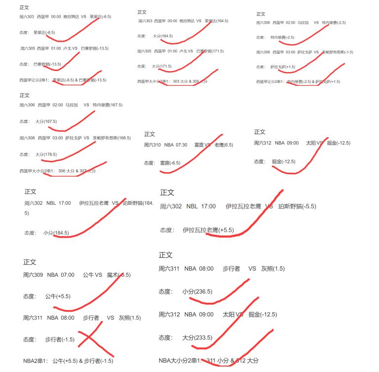 波总昨天太霸气!西篮甲4组2串1大满贯!NBL2组全红!单场2组大满贯!主任10√8!NBA5组√3组!今日私房菜一共25组精选!主任4组8场!单场3组3场!篮球精选单场2组+16组篮球2串1!各位粉丝朋友们可以按需选择参考,GO~~